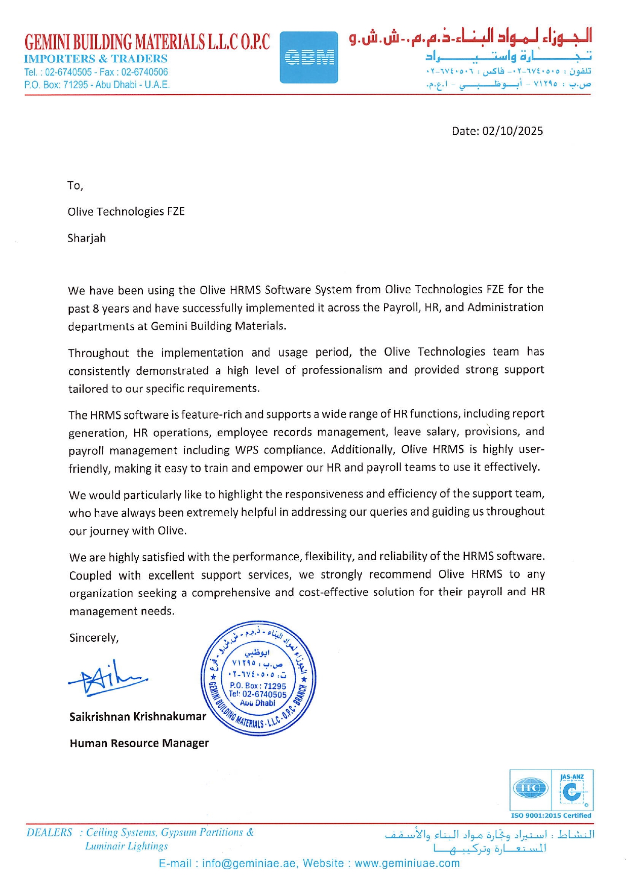 Olive Technologies FZE is a nine year old software company, continuously growing with its software products used by hundreds of Customers in more than 13 different countries now. Olive SQL is the first Realtime Integrated payroll software offering a truly flexible payroll and HR solution for the companies in Middle East and South Asia. Olive SQL has a comprehensive range of rules and configurations as per the standard requirements of the Middle East and South Asia as well as the specific rules of your company. Olive SQL offers unmatched HRM features on payroll and leaves for any type of industry with complete ease of use!
